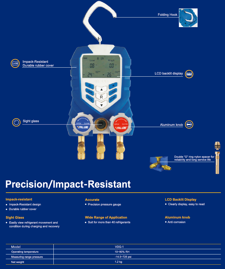 Value - Digitale manifold set met temperatuurklem incl slangenset